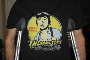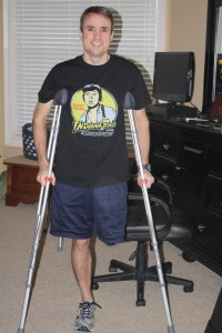 Yet another attempt of this disease to break my spirit – I had my first amputee fall Friday night. I was getting out of bed to use the little boy’s room. The usual routine is to get out of bed using the walker/hopper, then transfer to the crutches to use around the house. A combination of the pain meds and being vaguely awake at 3 AM led to a very low state of attentiveness. When I attempted to transfer to the crutches, I lost my balance and fell on Short Round. Fortunately, I fell on padded carpet, the wound held and no serious damage occurred.*